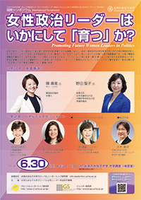 Development of women’s political leadership has been an important social agenda not only in Japan but also in countries and regions all over the world. Encouraging the young generation, such as high school and university students, to participate in politics and providing leadership training for them can be an effective way to achieve this. In the first session of this symposium, two female national parliament members from Japan and South Korea will deliver keynote speeches about their career experiences. The following panel discussion session takes up issues of women’s political leadership education, starting with the panellists’ reports on the achievement and challenges of Japanese women’s political leader education and on young political leader training in the German Social-Democratic Party.