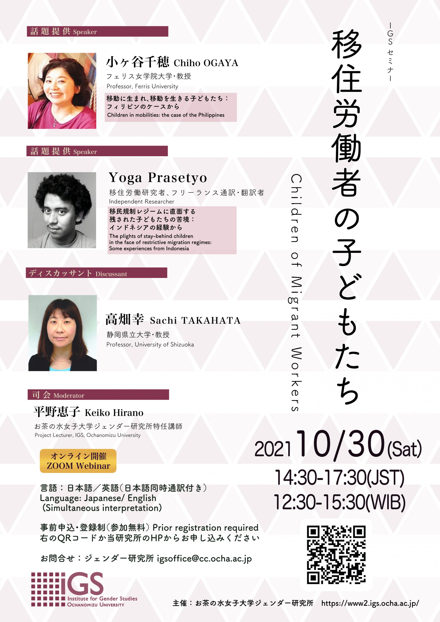 Organizer: Institute for Global Leadership and Institute for Gender Studies, Research Organization for the Promotion of Global Women’s Leadership, Ochanomizu University